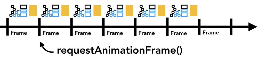 图18:在动画帧的时间轴上运行的较小的JavaScript块