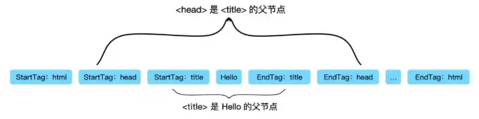 Hello的出现在title的starTag和endTag标识之间,那么hello属于title的children