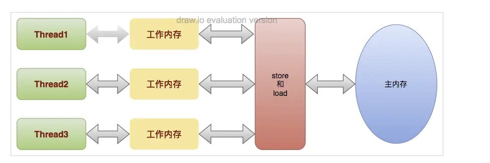 每个线程只能访问自己的工作内存,本线程的工作线程对于其他线程是不可见的。