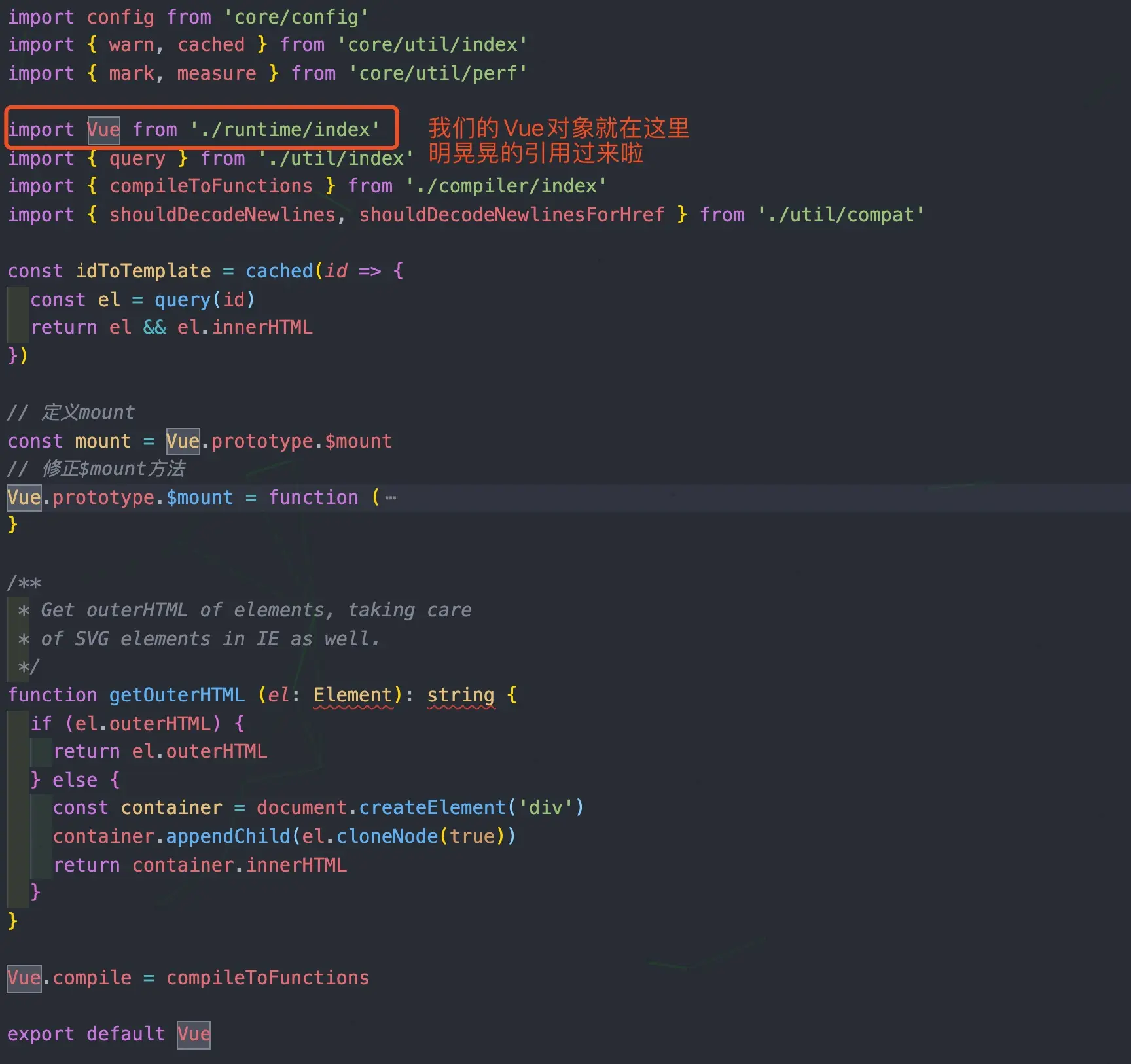 接下来马上就能找到源码啦,我们看一下web/entry-runtime-with-compiler.js吧!