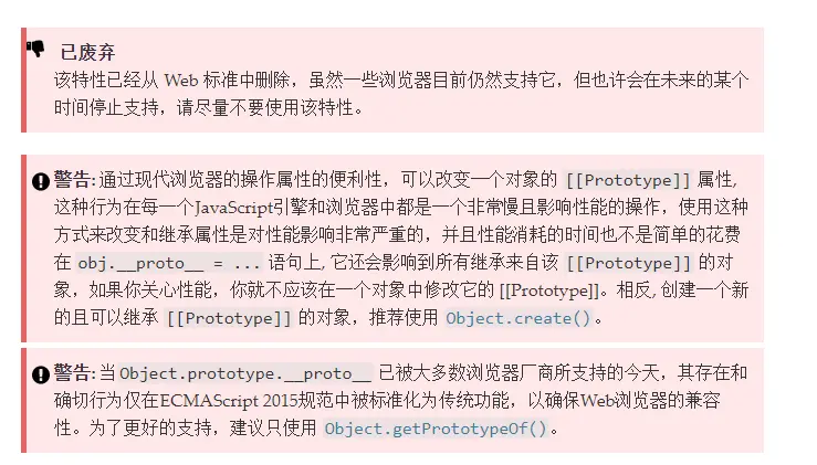 注:虽然__proto__比较常见,但问题也很大,简单来说就是WEB标准中已经删除了__proto__,但浏览器仍然支持
