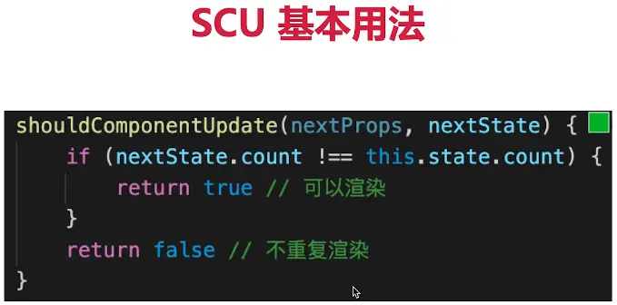 SCU使用新的state和旧的state做比较,返回值true和false又决定了是否重新渲染