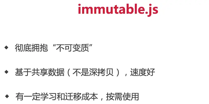 浅比较已经使用大部分情况,尽量不要做深度比较,深度比较,一次性递归到底,性能不好