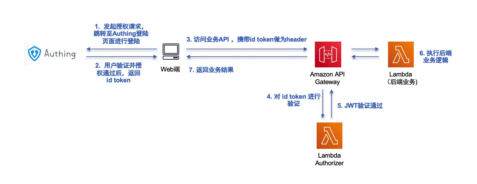 通过 Authing 登录认证后,可获取令牌(即 id token)。通过发送 HTTP 请求时在 header 携带令牌,即可访问受保护的 REST API。