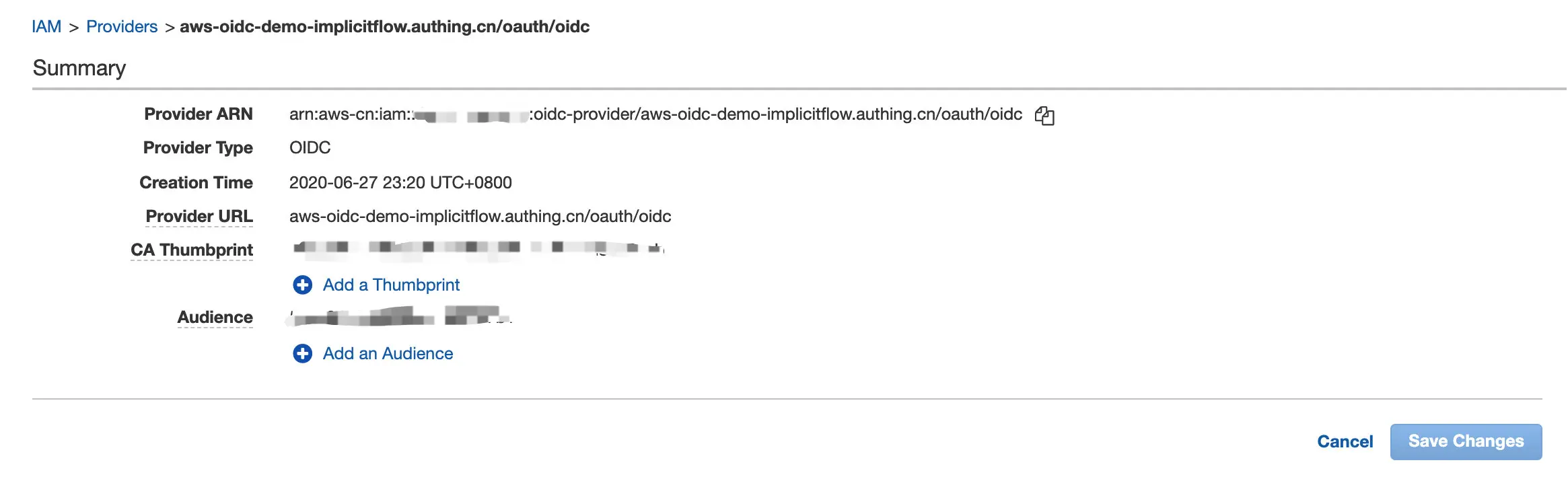- Provider URL : 即为 Authing 应用对应的 issuer, 比如本示例使用的 issuer 为:aws-oidc-demo-implicitflow.authing.cn/oauth/oidc。