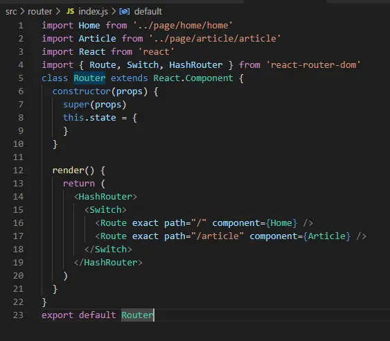 上篇文章有目录结构,对于初始化的react项目是没有router相关文件的,因此可以自己建立一个router文件夹/index.js 用来编写路由相关的,以下贴上路由文件相关配置