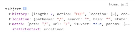 react中你可以通过 this.props来获取到路由相关参数。当你浏览器中控制台输出,就可以看到以下结果。