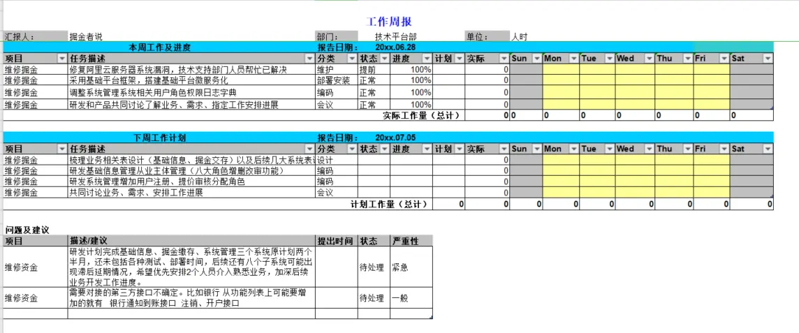 大家好,我是掘金者说。本周来讲述对周报的方法和认识。领导说不需要周报了,我还是自己私下进行写日报、写总结(在不占工作时间前提下)、做笔记,也许是个人习惯吧。