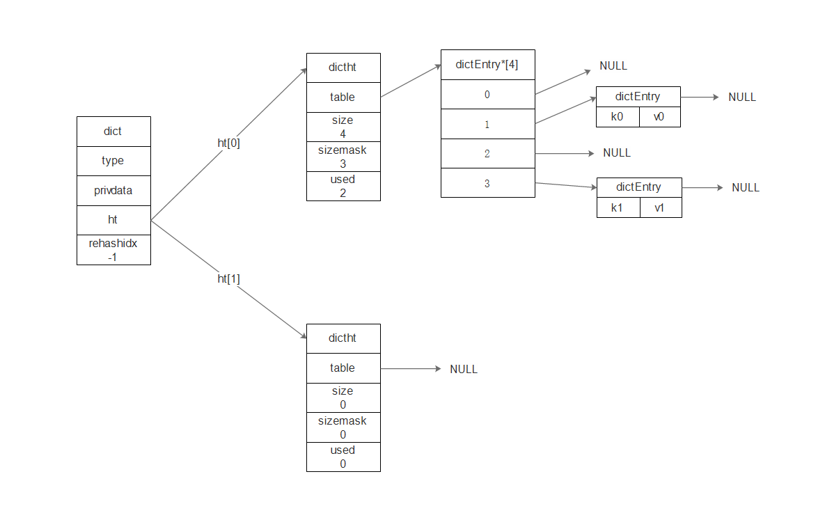 dictht ht[2]; // 哈希表