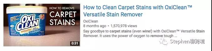 Oxiclean在使用清晰显示其产品和视频标题的自定义缩略图图像方面做得非常出色。