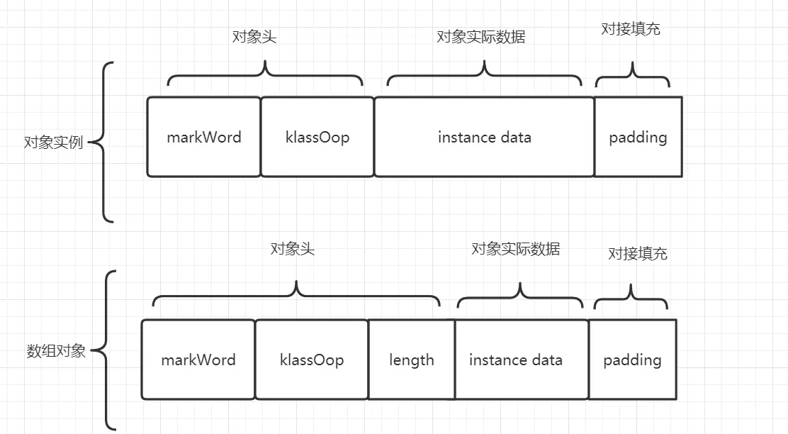 - Object的实例数据内存使用三部分组成的,对象头,实际数据区域、内存对齐区