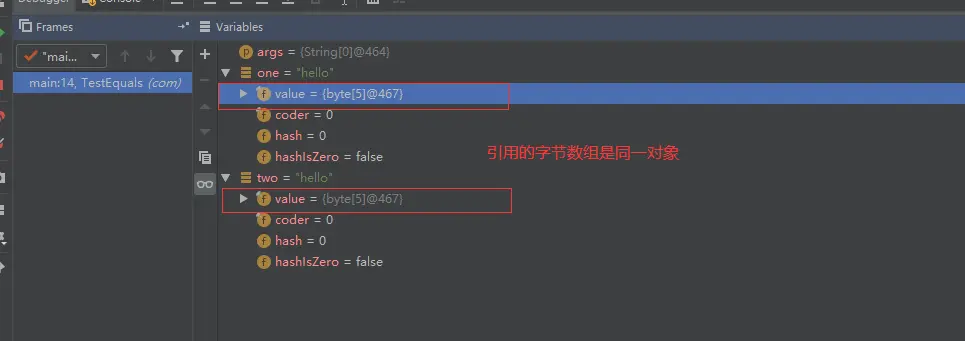 false // one虽然不等于two;但是它们具体的char[] value 还是指向同一块内存的