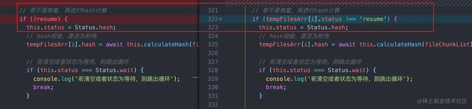 之前的处理逻辑太简单粗暴,存在诸多问题。现在将状态定位在每一个文件之上,这样恢复上传时,直接跳过即可
