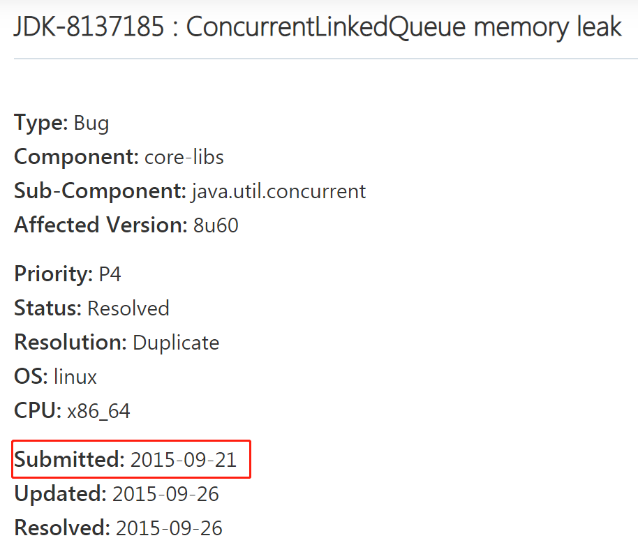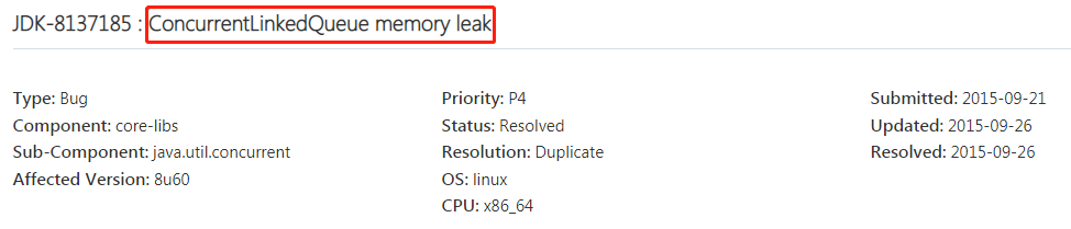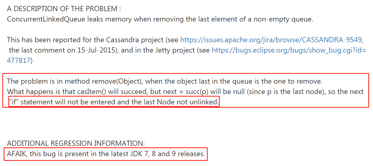 因为这个 BUG 在 JDK 中是已经修复了,出于好奇,我想看看 CLQ 还有没有机会重新站出来。