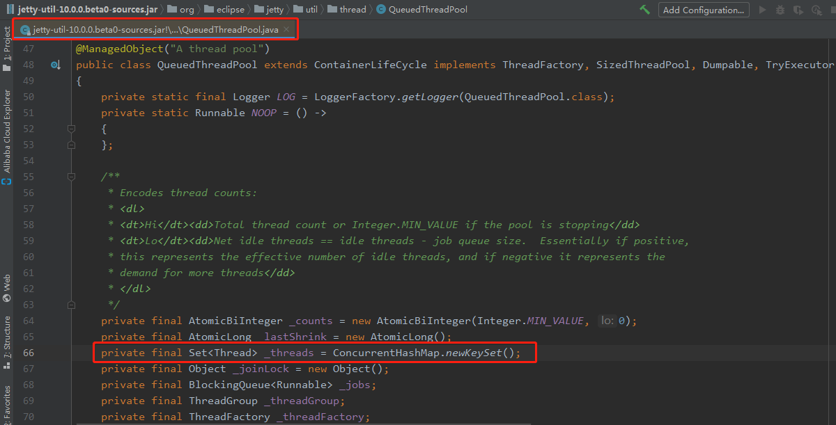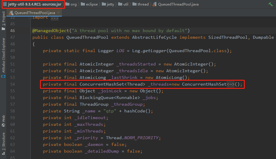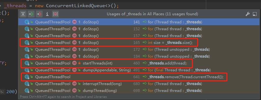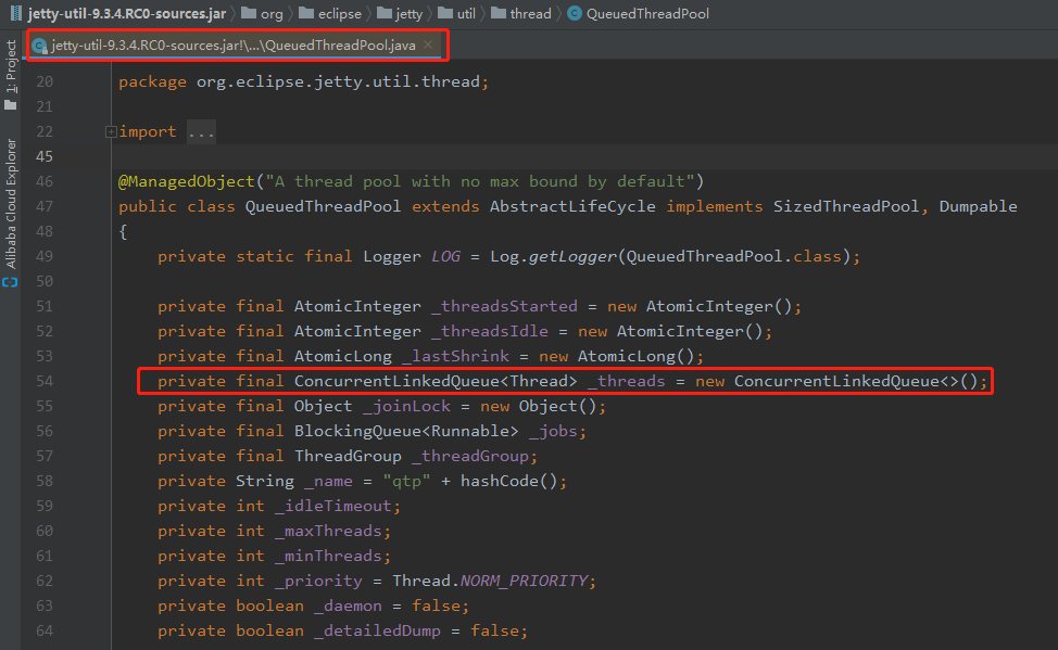 先给大家看一下 jetty 的 QueuedThreadPool 线程池。