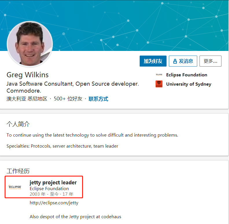 jetty 项目的领导者,短短的几个单词,就足以让你直呼牛逼。