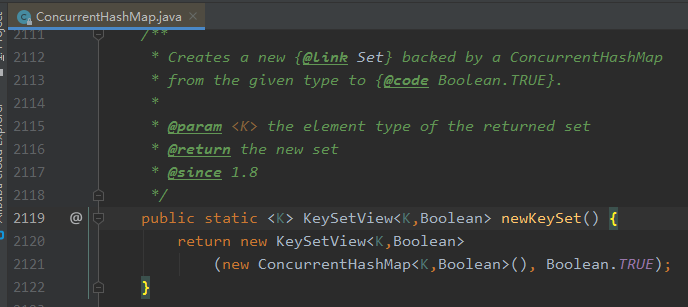 而是 JDK 8 的 ConcurrentHashMap 里面的 newKeySet 方法,C 位出道: