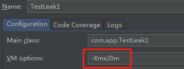 还是用之前的测试案例,但是我们指定 -Xmx 为 20m,即最大可用的堆大小为 20m。
