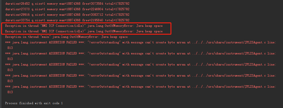 程序运行 19 分 06 秒后,发生 OOM 异常: