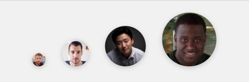 每个角色的大小都不同,这非常适合用 CSS 变量来解决。假设有四个不同大小的用户头像。