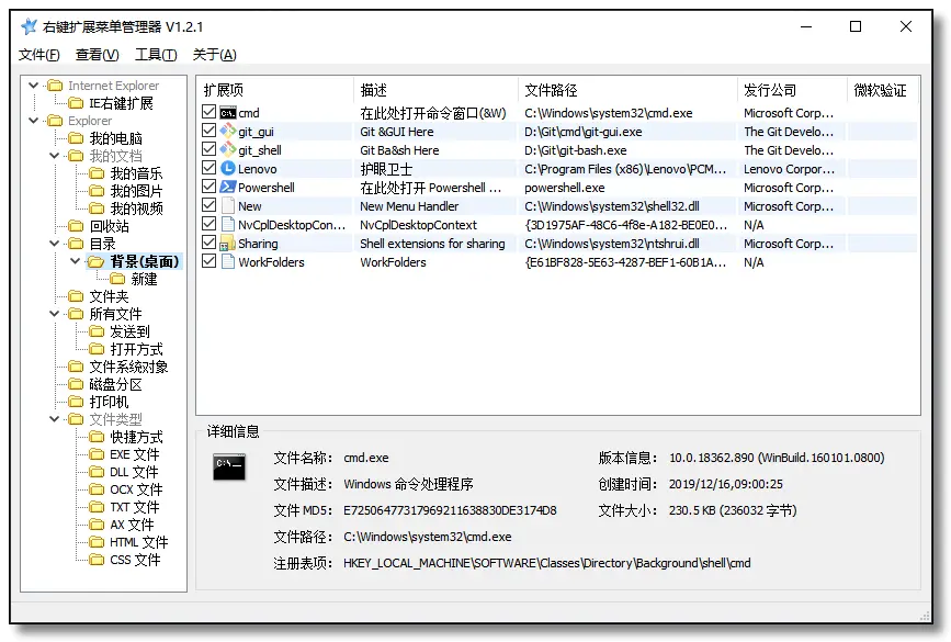 右键冗余功能太多看着糟心,但是又不知道如何设置,借助 RightMenuMgr,可以管理右键菜单,很方便。