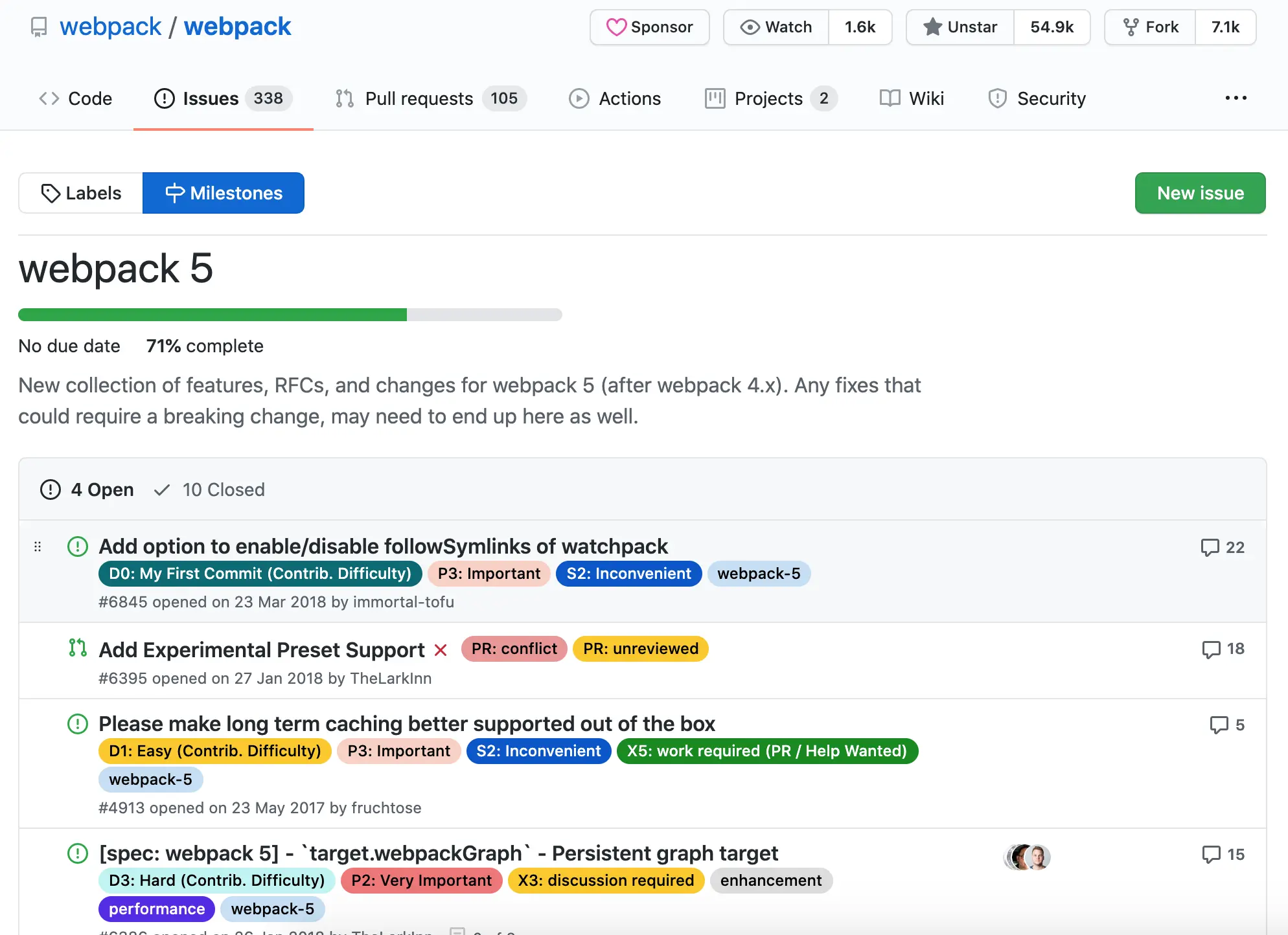 标题我们写上了Webpack 新特性实战尝鲜的第二季,那么肯定就有第一季了( Webpack5.0 新特性尝鲜实战 🦀🦀【第一季】)。距离写上一篇文章已经超过了一年的时间,那时候还是major版,我们先来总结一下吧: