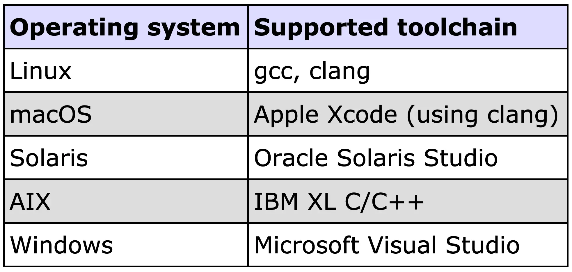 一图胜千言,各平台上的编译器支持如下表所示,按平台选择即可: