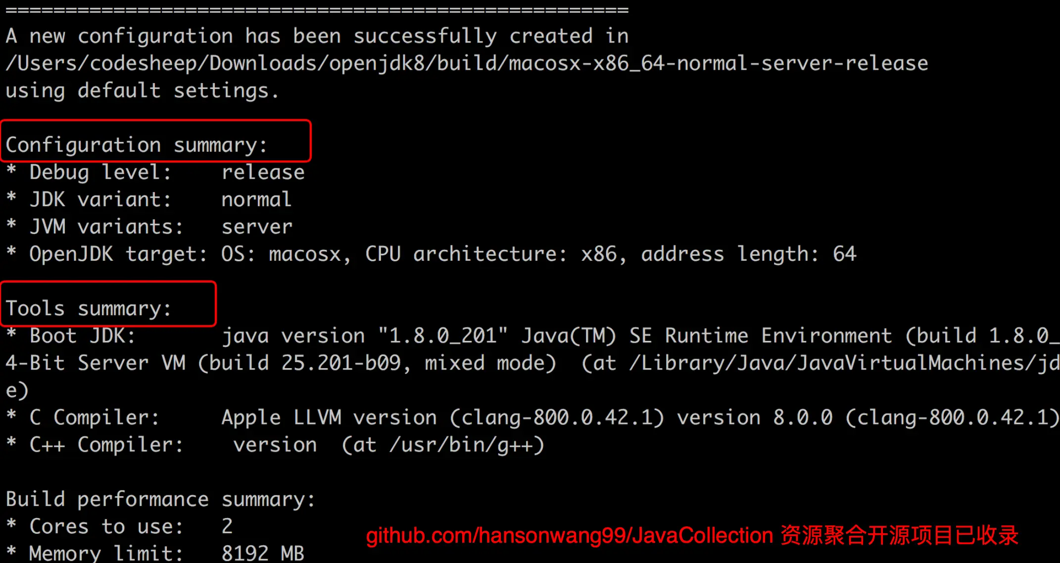 从两张图的对比可以看出,编译JDK 8和JDK 11完成时在输出上还是有区别的。时间上的区别很大程度上来源于JDK 11的编译机配置要高不少。