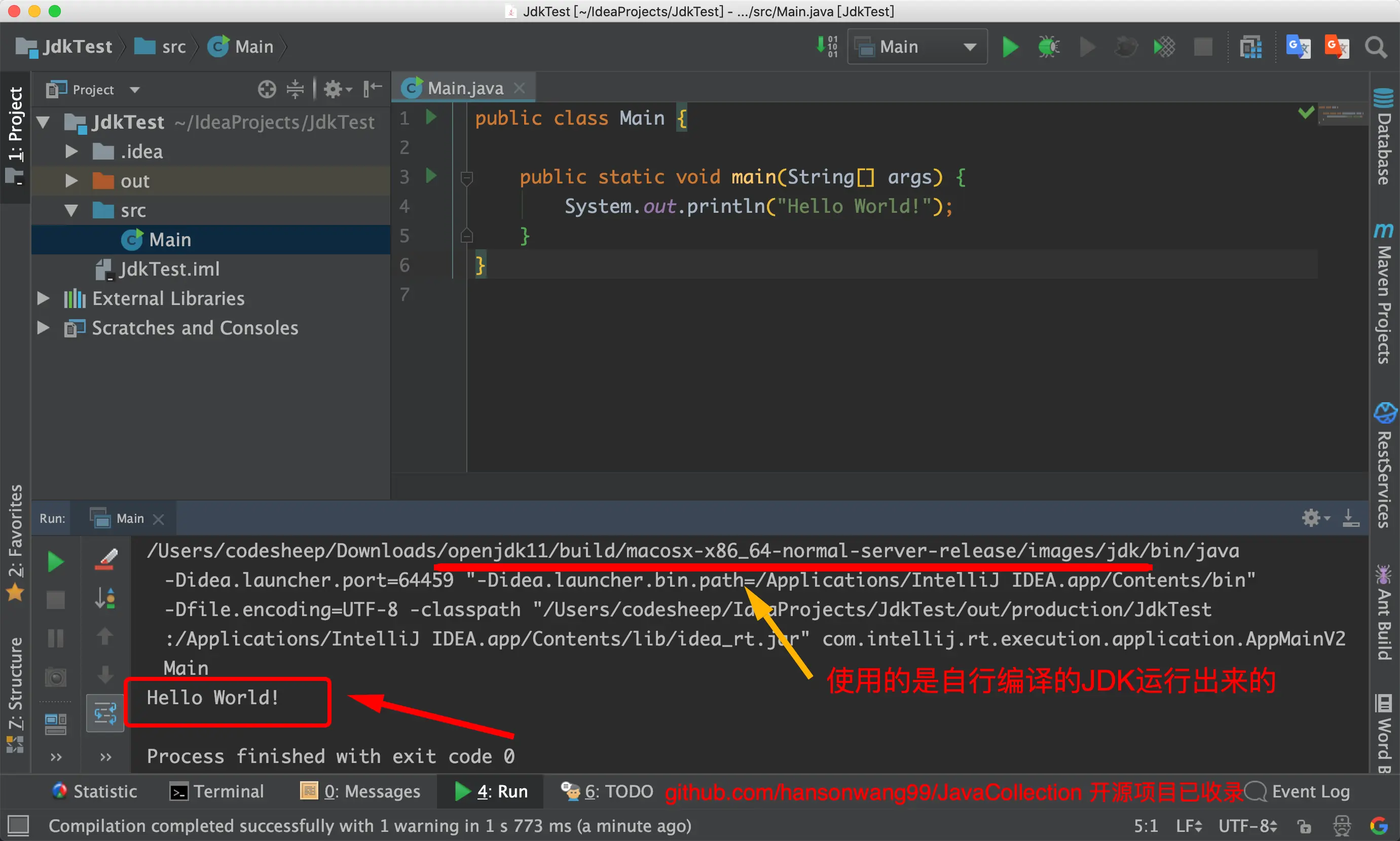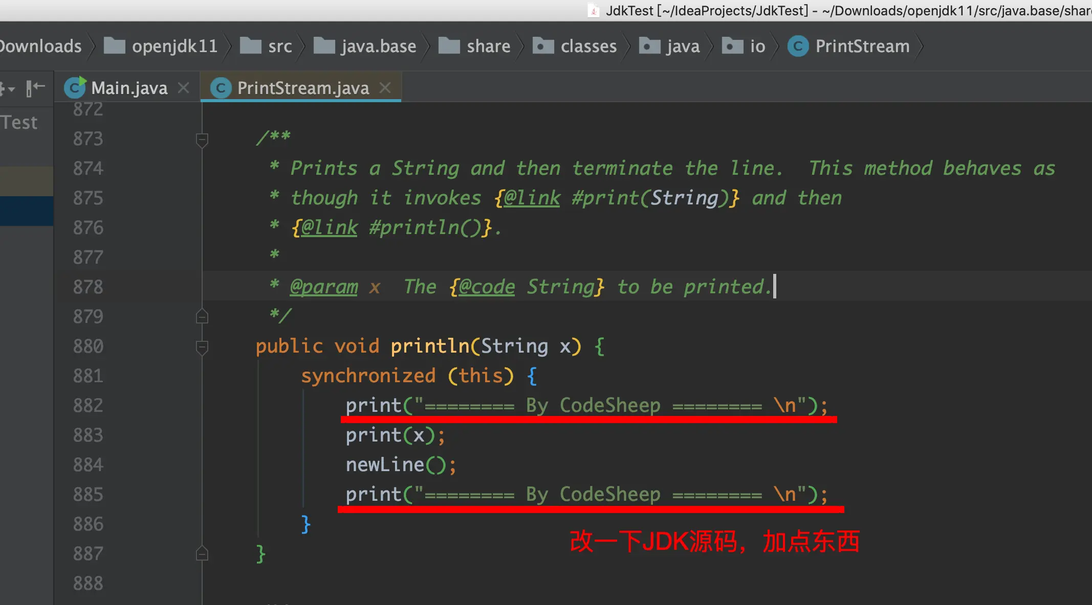 重新编译之后,我们再次运行JdkTest项目,就可以看到改动的效果了: