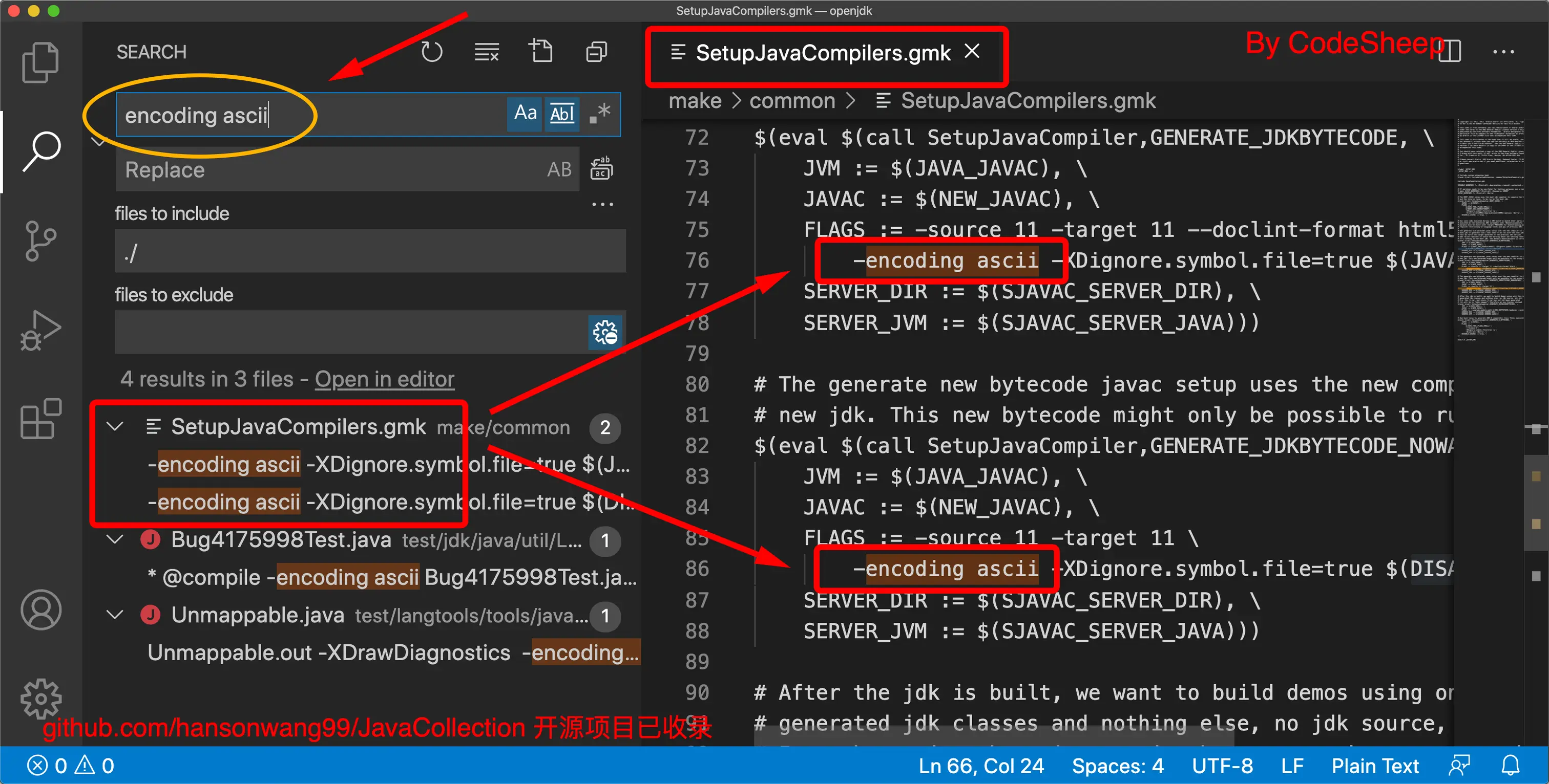 于是将JDK的源码从根目录导入了Vs Code,然后全目录查找encoding ascii相关的内容,看看有没有什么端倪,结果发现