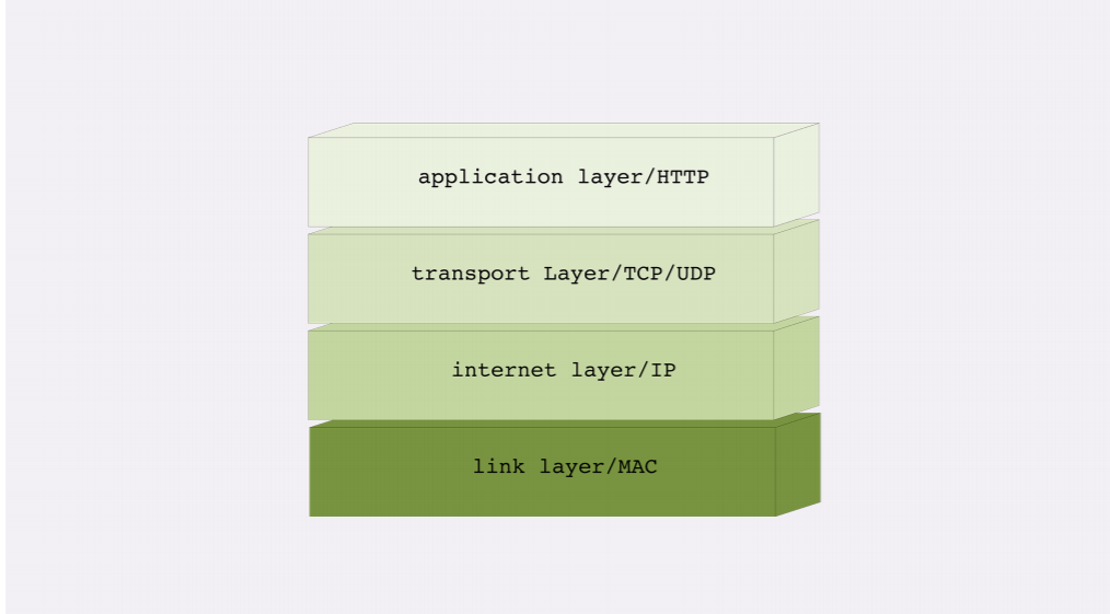 TCP/IP 协议总共有四层,就像搭积木一样,每一层需要下层的支撑,同时又支撑着上层, 任何一层被抽掉都可能会导致整个协议栈坍塌。