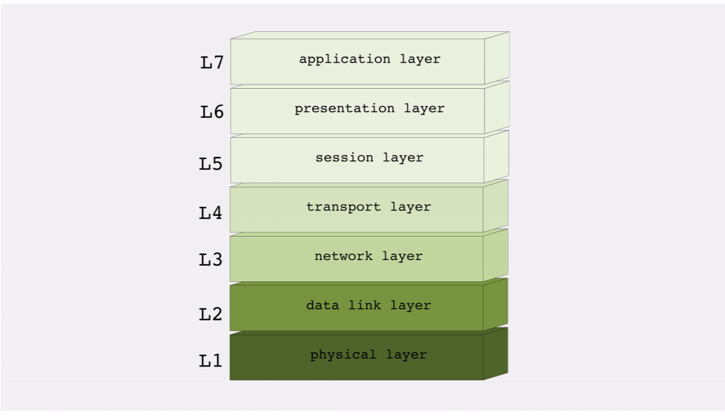 OSI 模型分成了七层,部分层次与 TCP/IP 很像,从下到上分别是: