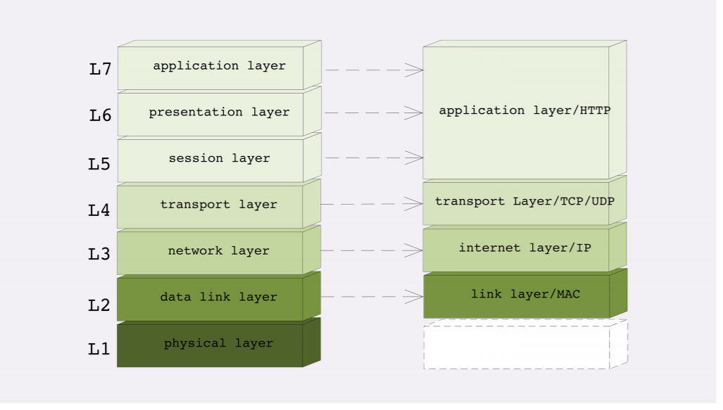 - 日常交流的时候我们通常使用 OSI 模型,用四层、七层等术语;