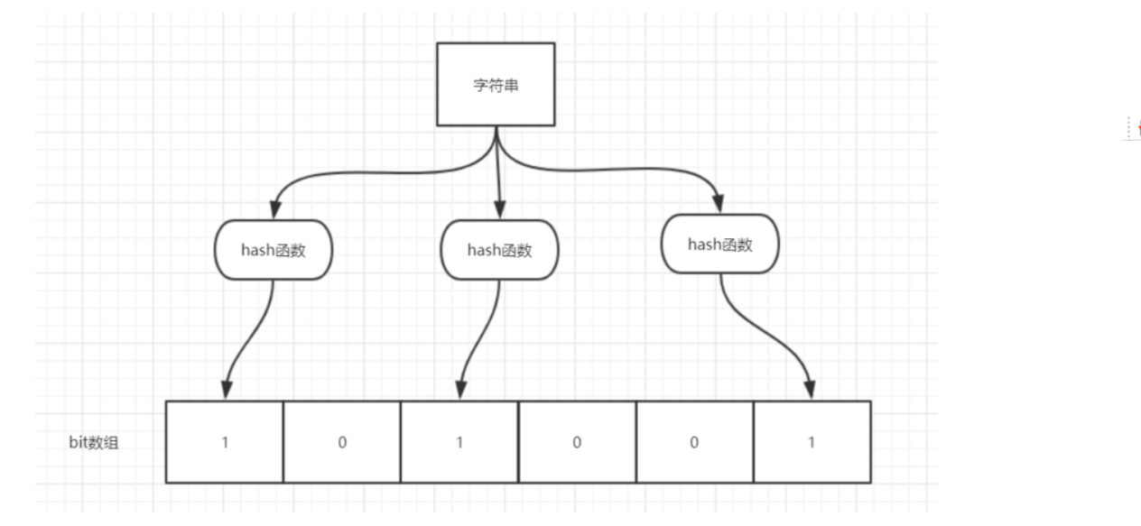 - 得到值之后判断位数组中的每个元素是否都为 1,如果值都为1,那么说明这个值在布隆过滤器中,如果存在一个值不为 1,说明该元素不在布隆过滤器中。