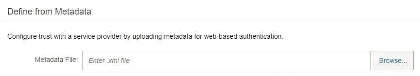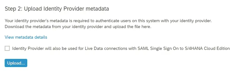 然后将IDPTENANT下载的SAML metadata上传到SAC上: