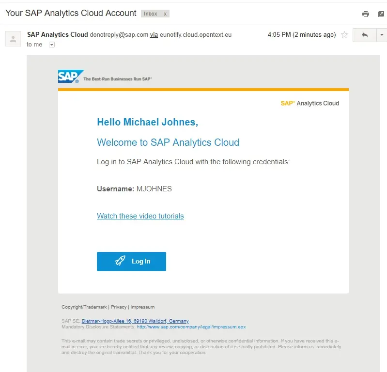 这个user记录里维护的email地址会收到一封邮件,要求激活在SAP Analytics Cloud上的用户: