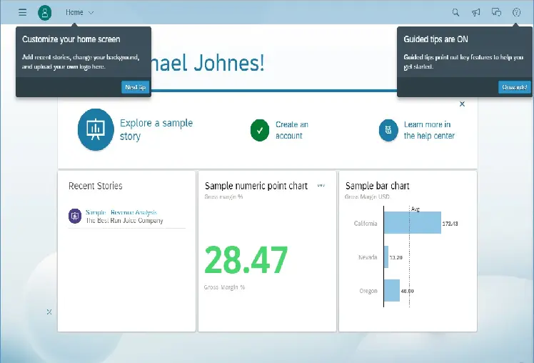 输入用户名和密码之后,登录上了SAP Analytics Cloud系统: