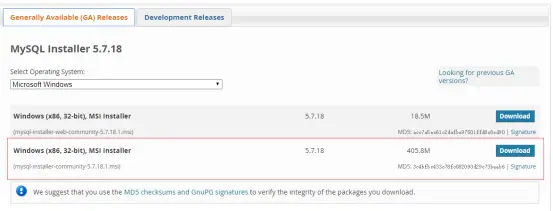选择第一项进行mysql安装程序的下载