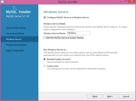 这里可以设置mysql server的名称和是否开机启动,我把名称改为了“MySQLzy”,取消了开机启动,其它的没改,点击“Next”