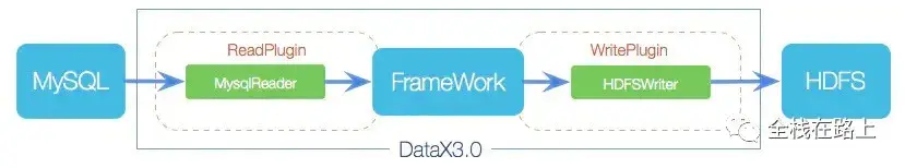 DataX本身作为离线数据同步框架,采用Framework + plugin架构构建。将数据源读取和写入抽象成为Reader/Writer插件,纳入到整个同步框架中。
