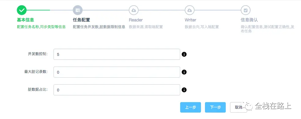 在准备好了数据迁移任务所需使用的 Reader/Writer 插件后,就可以通过移山去创建迁移任务了,其实就是通过图形化配置去生成一个完整的 Job 配置文件,为运行任务做准备。