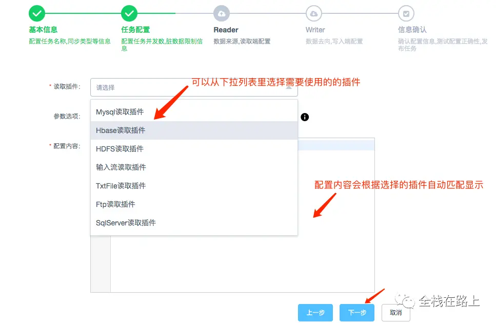 拿创建一个 HbaseReader 插件为例,配置样例如下: