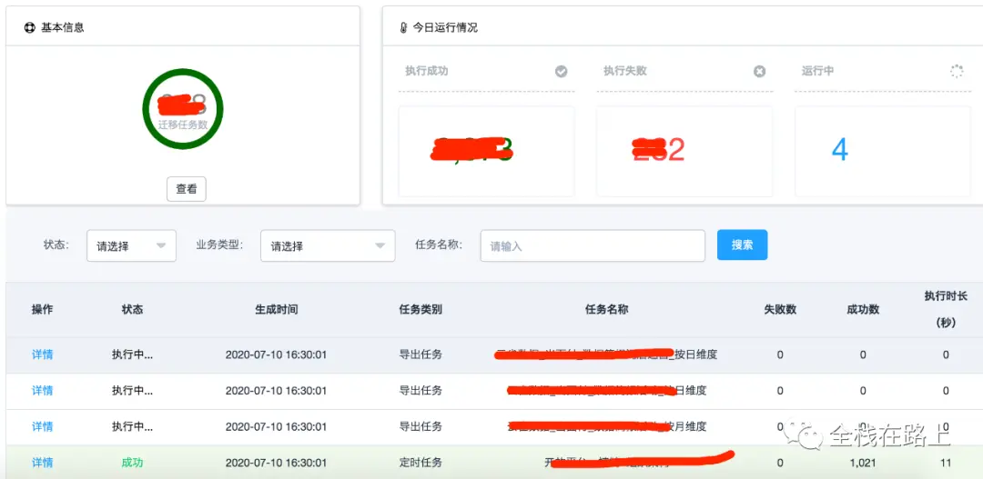 在监控管理界面,可以对当天所有的迁移任务进行监控: