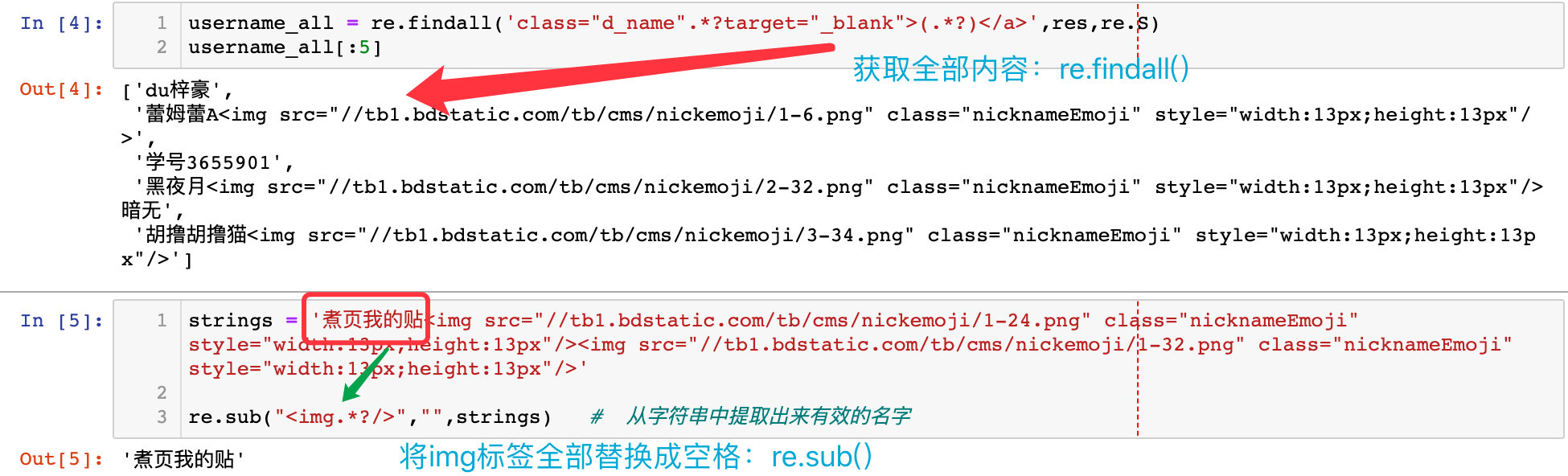 user = re.sub("<img.*?/>","",name) # 将username中的img标签去掉
