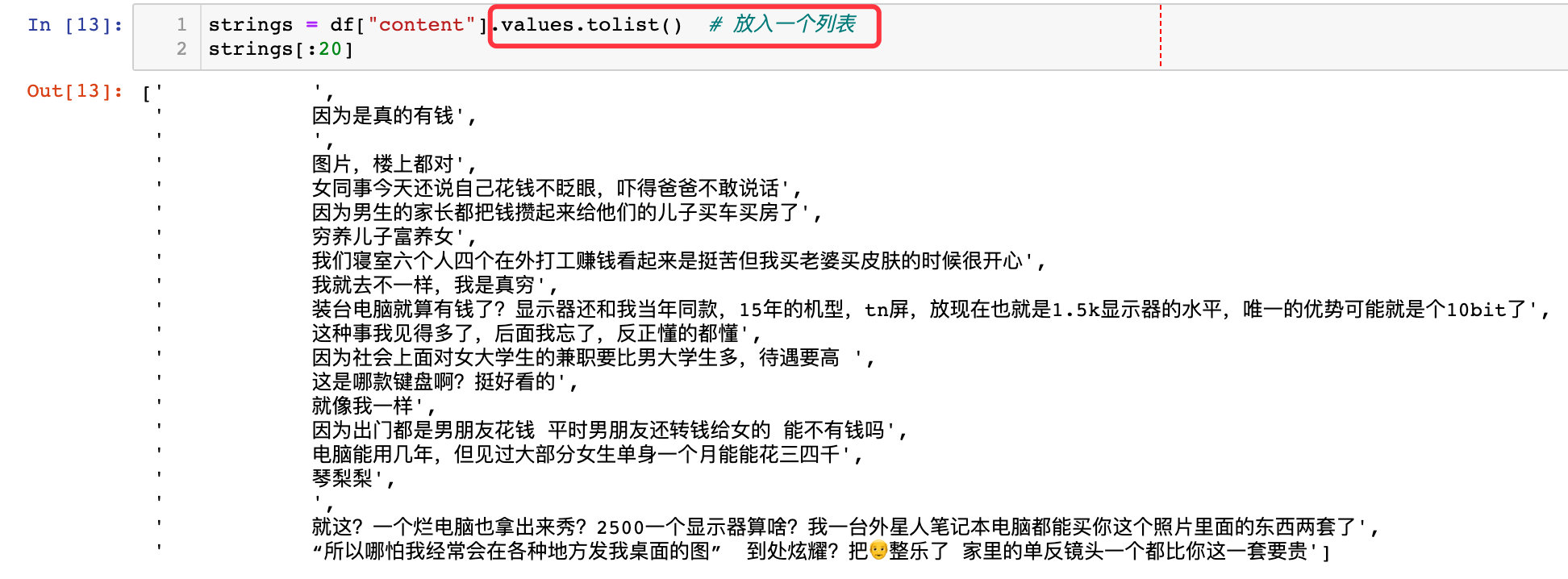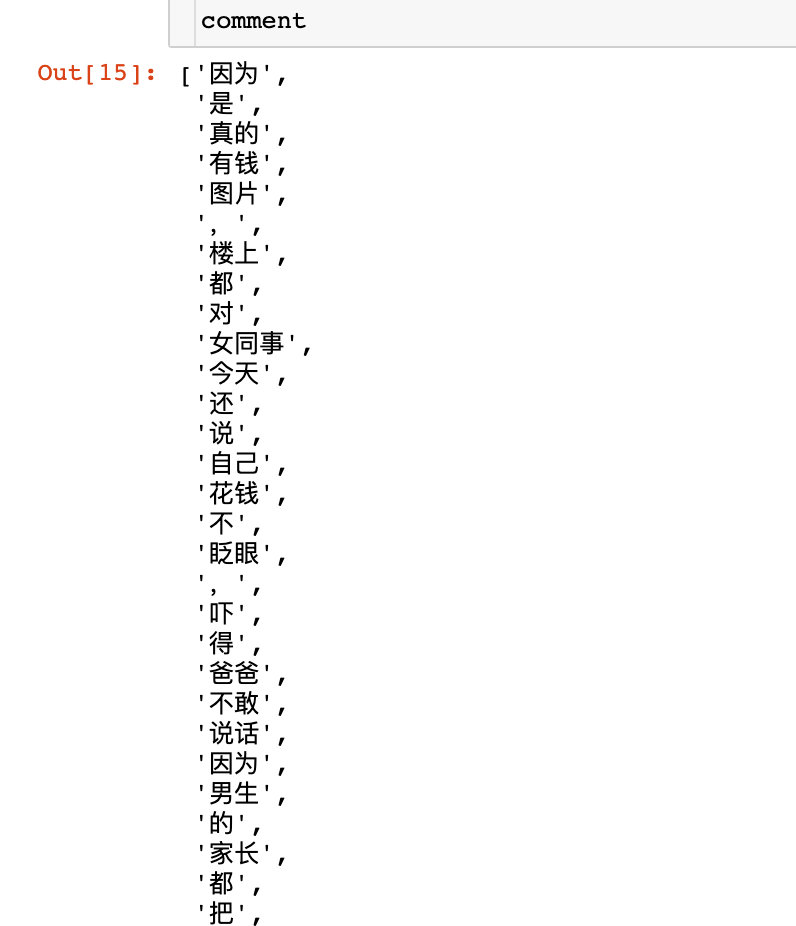 comment中,方便后续wordcloud的处理
