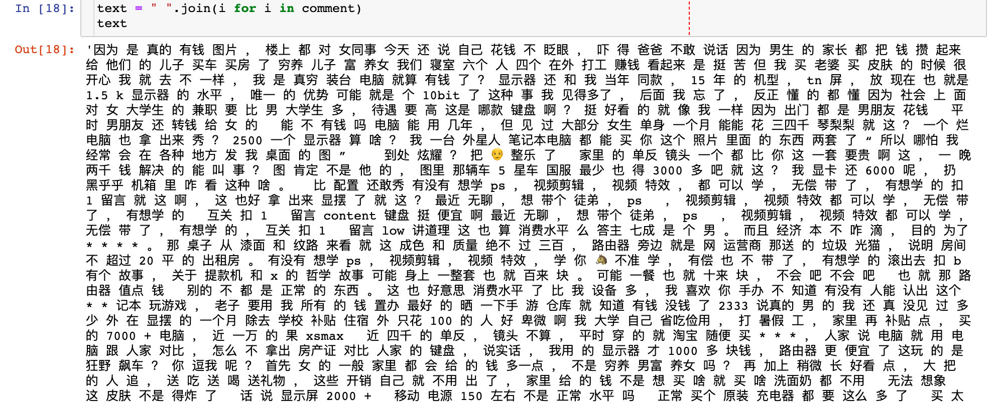 text = " ".join(i for i in comment) # 待处理的字符串