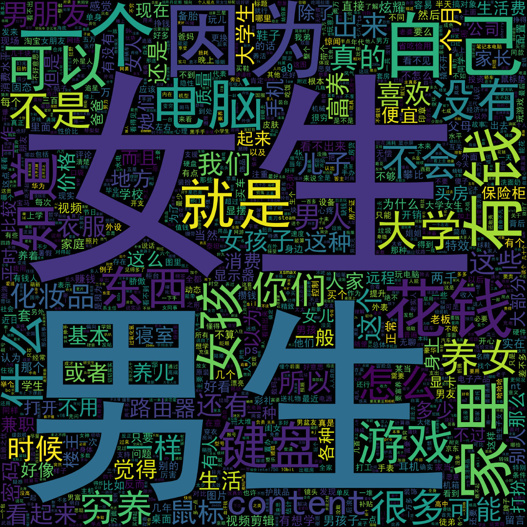 "男生","女生","就是","因为","可以","不是","自己","什么","知道","这个","地方","而且","东西","这些","或者","基本","所以","怎么","时候","你们","我们","content","女孩","的","我",",","视频","关于","也","就","了","*","是","不",","