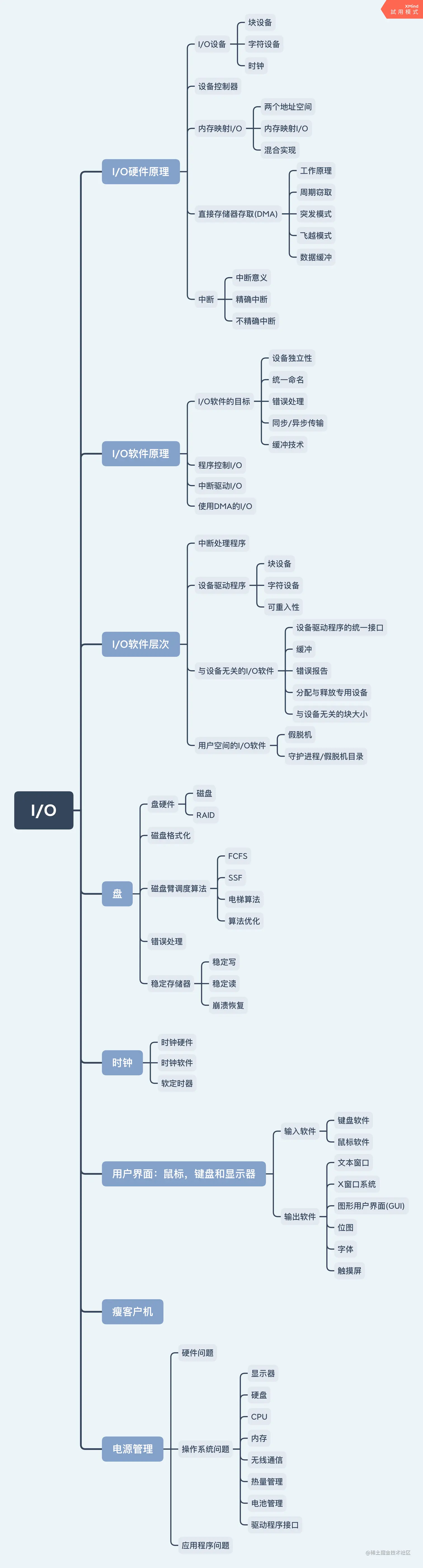 最后还有一个概念是共享设备和独占设备的问题,有些设备,比如磁盘,可以被多个用户使用,多个用户同时读取一个文件是没什么问题的,但是对于类似打印机的设备,则只能在同一时刻允许一个用户独占,独占设备引入了各种各样的问题,比方说,死锁。