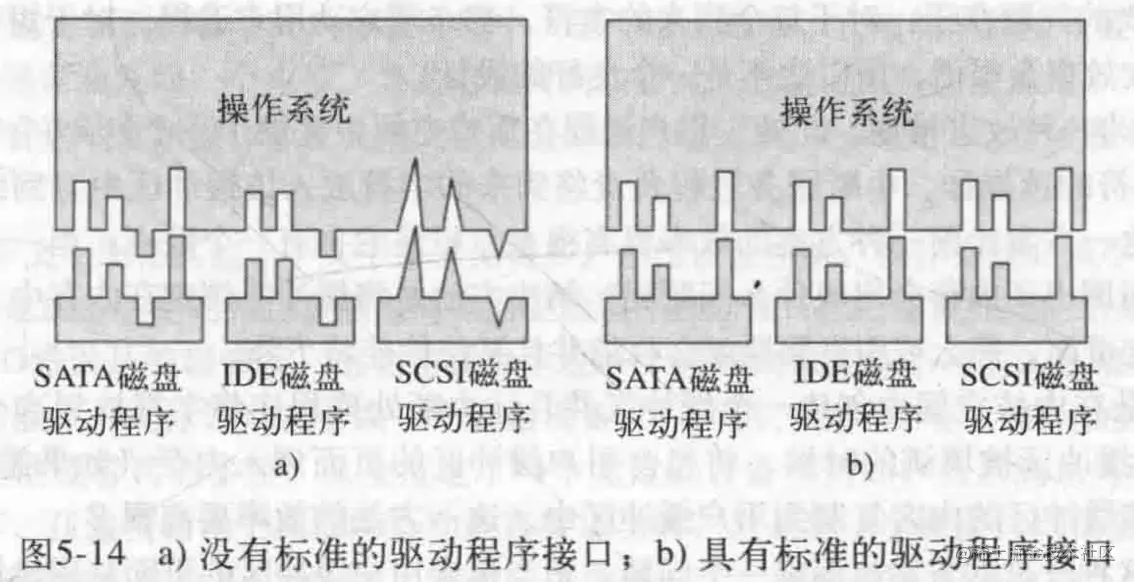 驱动程序统一接口的主要目的是简化OS接口的设计,尽量让不同驱动程序可以更简单地装载进OS中。通过对不同的I/O设备驱动程序提供一致的,公共的接口实现。