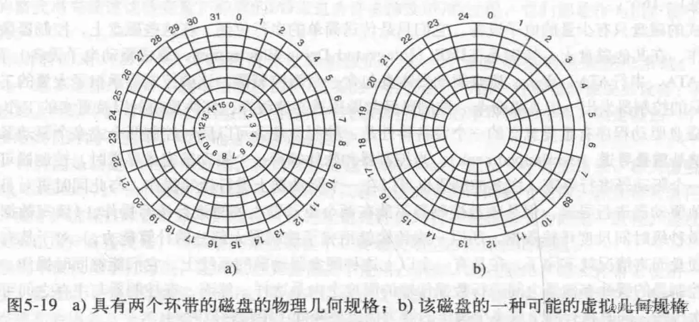 当代磁盘扇区并不同半径的,而是没向外一个磁道,大概增加4%的扇区,这是为了充分利用空间。比如下图的第一个。